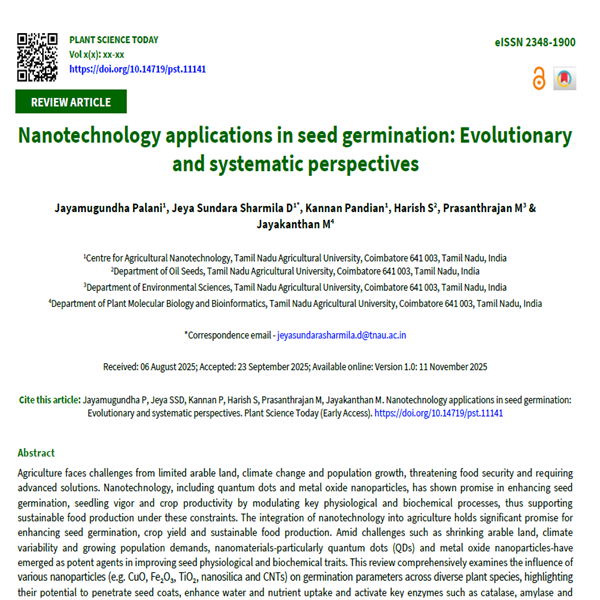 Agriculture faces challenges from limited arable land, climate change and population growth, threatening food security and requiring advanced solutions. Nanotechnology, including quantum dots and metal oxide nanoparticles, has shown promise in enhancing seed germination, seedling vigor and crop productivity by modulating key physiological and biochemical processes, thus supporting sustainable food production under these constraints. The integration of nanotechnology into agriculture holds significant promise for enhancing seed germination, crop yield and sustainable food production. Amid challenges such as shrinking arable land, climate variability and growing population demands, nanomaterials-particularly quantum dots (QDs) and metal oxide nanoparticles-have emerged as potent agents in improving seed physiological and biochemical traits. This review comprehensively examines the influence of various nanoparticles (e.g. CuO, Fe₂O₃, TiO₂, nanosilica and CNTs) on germination parameters across diverse plant species, highlighting their potential to penetrate seed coats, enhance water and nutrient uptake and activate key enzymes such as catalase, amylase and dehydrogenase. Additionally, we address the dual role of QDs in promoting early growth stages while acknowledging possible phytotoxic effects at higher concentrations. The review further examines antioxidant responses and the regulation of secondary metabolites in plants and it also assesses the biosafety of nanomaterials using model soil organisms such as earthworms. The review also explores antioxidant and secondary metabolite responses and evaluates biosafety using model soil organisms like earthworms. Overall, the study underscores the need for plant systematics-informed research on nanoparticle- plant interactions to optimize their safe and targeted application in seed technology and sustainable agriculture.