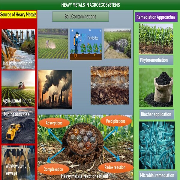 The purpose behind critically analyzing the sources, pathways and ecological effects of heavy metal contamination in agroecosystems is to synthesize the available research in order to learn the important mechanisms of contamination and evaluate their effects on soil health, plant uptakes and food safety. Based on the latest scientific literature, the review discusses industrial processes as sources of cadmium, lead, arsenic, mercury, chromium, copper and nickel to the wastewater, including mining, metal and battery production and fertilizer production and also considers the contribution of municipal solid waste and sewage. With little over 30-40 % of the wastewater receiving proper treatment, there has been a massive release of untreated effluents to the natural water bodies and agricultural systems, posing persistent contamination threats. The review has placed importance on the fact that when polluted water is used in irrigation, it brings the heavy metals to soils and forms permanent complexes with the clay and organic matter, changing the soils structure, nutrient availability, microbial activity and general fertility. A thematic review of the available literature demonstrates that the bioavailability of heavy metals has been affected by the soil pH, redox potential and organic matter, which allows plants to uptake it via mass flow and diffusion and later translocation to edible tissues. This pollution of food is a great threat to human health, such as organ damage and neurological diseases. The review also assesses the existing mitigation strategies, including wastewater treatment, sustainable irrigation methods and soil remediation methods with special consideration to the potential and limitations of phytoremediation. It ends by providing research gaps and the necessity of long-term, ecosystem-level research studies to enhance plant-based remediation measures and agroecosystem resilience.