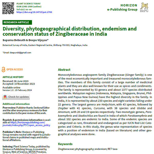 Diversity, phytogeographical distribution, endemism and conservation status of Zingiberaceae in India