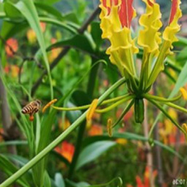 Gloriosa superba L. (Glory lily), is an endangered medicinal plant valued for its high colchicine content. Understanding the floral biology and pollination ecology of G. superba is crucial for identifying factors limiting seed setting. This study was carried out at Dr. YS Parmar University of Horticulture and Forestry, Solan, Himachal Pradesh, India, during 2021-2022, focusing on G. superba’s floral biology and pollinator activity from anthesis to senescence. The scarlet red flowers were born on pedicels, with tepals measuring 6.69 × 1.45 cm tepal and a mean weight of 1.72 ± 0.04 mg. Pollen viability was highest on the one day after anthesis and stigma receptivity peaked on the day of anthesis. Among nine flower stages, nectar volume and nectar sugar concentrations were maximum at 6th and 7th stages, respectively. Three kinds of insect floral visitors viz., allotrophous, hemitrophous and eutrophous from 6 orders, 14 families and 16 genera were recorded. The Shannon, Simpson, dominance and Margalef richness indices during 2021 and 2022 were 2.58, 0.16, 0.83 and 1.3 and 2.15, 0.22, 0.83 and 1.22, respectively. Fruit set (86.45 ± 0.21 %), pod length (7.24 ± 0.23 cm) and colchicine percentage were highest in hand pollination. However, test weight (2.02 ± 0.01 g), germination percentage (77.98 ± 0.26 %) and colchicine percentage in seed under honeybee pollination were statistically similar to blower-assisted pollination.