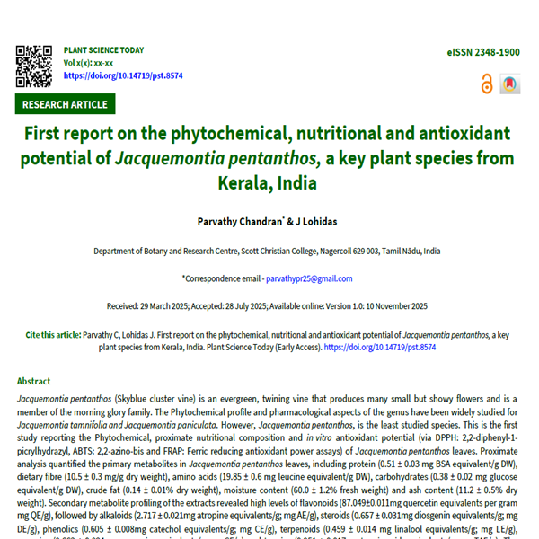 First report on the phytochemical, nutritional and antioxidant potential of Jacquemontia pentanthos, a key plant species from Kerala, India