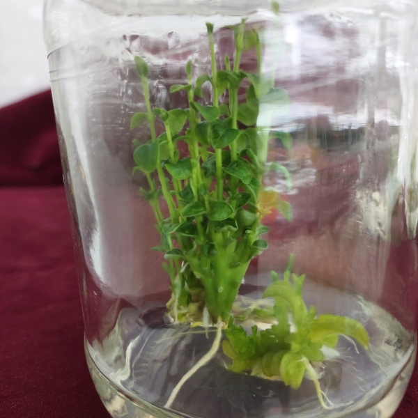Traditional propagation of Tylophora indica is challenging due to low seed viability, poor germination and difficulty in rooting vegetative cuttings. Micropropagation offers the best solution for rapid and true-to-type plant multiplication. The study aims to standardize a micropropagation protocol in Tylophora indica (Burm. F.) Merrill through indirect organogenesis from leaf explant. This protocol includes sterilization of leaf explant, callus production, shoot regeneration, root initiation and acclimatization. Surface sterilization treatment using 70 % ethanol for 2 min, 0.1 % bavistin for 15 min, 1000 ppm streptomycin for 10 min and 0.1 % HgCl2 for 3 min found the most effective. The best callus, which was dark green, friable and heaviest (3.53 g) was observed in MS media supplemented with 1 mg L-1 Benzyl Adenine (BA). MS media supplemented with 2 mg L-1 BA showed the highest shoot regeneration (65.94 %) and maximum number of shoots per callus (12.90). In vitro regenerated plantlets were inoculated into MS media supplemented with different concentrations of Indole-3-acetic acid (IAA). MS media supplemented with 0.5 mg L-1 IAA was found to be the most effective for rooting (83.33 %) and with the longest roots (7.60 cm). In vitro rooted plantlets were acclimatized successfully after primary and secondary hardening. Primary hardening mixture, which was a mixture of cocopeat and soil in a 1:2 ratio, resulted in 80 % survival rate. After secondary hardening, the overall plant survival rate was 75 %.
