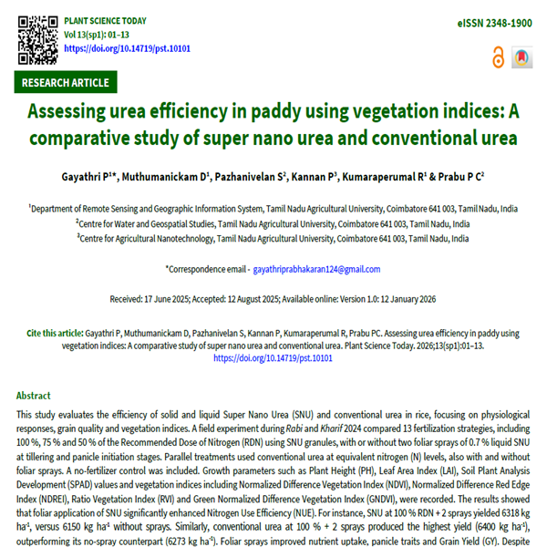 Assessing urea efficiency in paddy using vegetation indices: A comparative study of super nano urea and conventional urea