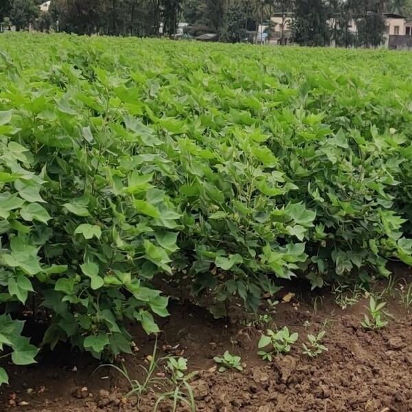 The productivity of cotton is stagnant and high-density planting system (HDPS) is the option for increasing productivity, so currently identifying genotypes in the region suited for HDPS along with canopy management to be tested so that enable to reduce the productivity gaps in the rain fed and irrigated farming as well as the diversified cotton growing areas. The present study was carried out to evaluate the effect of growth retardant and nitrogen levels on plant canopy architecture and enhancing productivity under HDPS. Three nitrogen levels (Recommended dose of nitrogen (RDN), 125 % RDN and 150 % RDN) and 3 levels of growth regulators (No growth regulator, mepiquat chloride (MC) at 20 g/ha at 60 days after sowing (DAS) and MC at 60 & 75 DAS) were studied across two HDPS suited genotypes (GISV-272 and GSHV-180) for three consecutive years (kharif 2019 to 2021). The experiment was laid out in split plot design with three replications at Research Farm of Main Cotton Research Station, Navsari Agricultural University, Surat. The plant height, number of sympodia and mean length of sympodia were significantly influenced due to nitrogen level; while, plant height, mean length of sympodia and plant width were significantly influenced due to genotypes. The growth retardant, MC significantly altered plant height, mean length of sympodia and plant width providing ample space for growth and development to both the genotypes under HDPS. The yield attributing traits and seed cotton yield were influenced greatly by the genotype and nitrogen levels. In this study, GISV 272 and 125 % of recommended nitrogen level under HDPS in rain fed region of Gujarat showed better performance and economics.