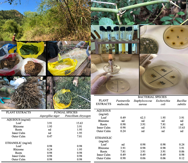 - Valentino MJG, Ganado LS, Ganado MR, Undan JR. Phytochemical screening and bio assay of the anti-microbial activity of three species of bamboo in Nueva Ecija, Philippines. Advances in Environmental Biology. 2015;9(24):389-96.