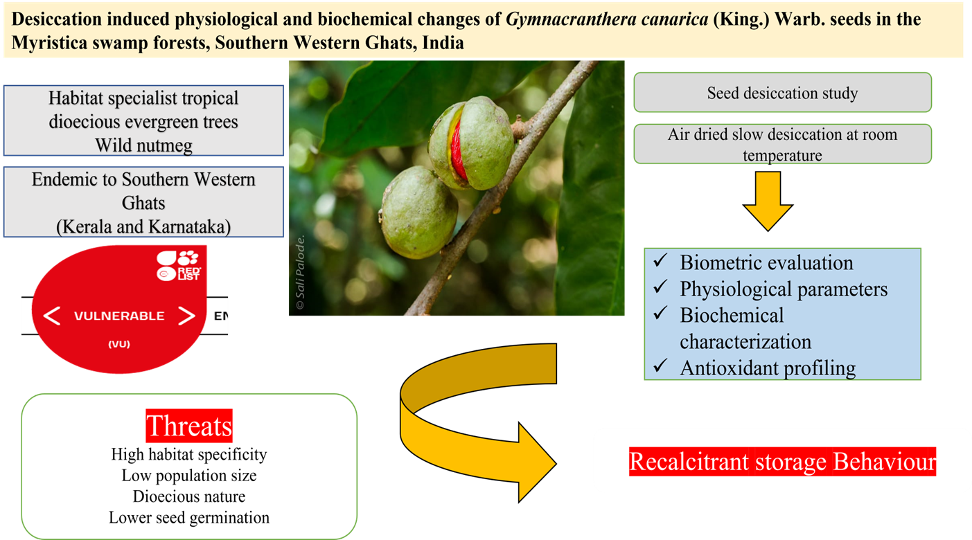 Desiccation induced physiological and biochemical changes of Gymnacranthera canarica (King.) Warb. seeds in the Myristica swamp forests, Southern Western Ghats, India