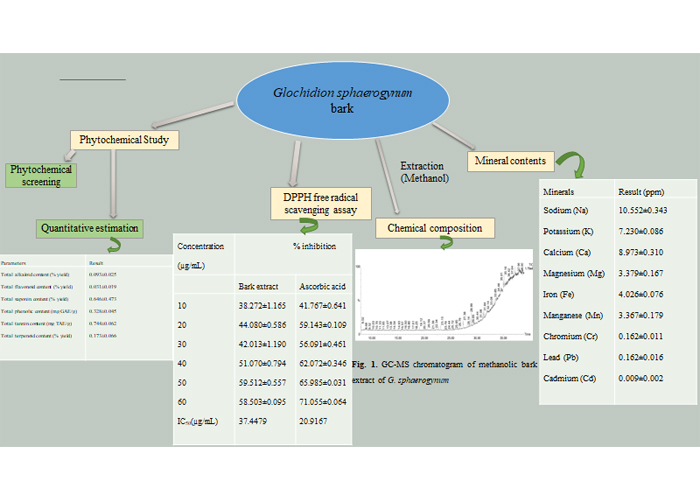 Investigation of phytochemical constituents, GC-MS, DPPH free radical scavenging assay, and mineral contents of Glochidion sphaerogynum (Mull. Arg.) Kurz bark extract