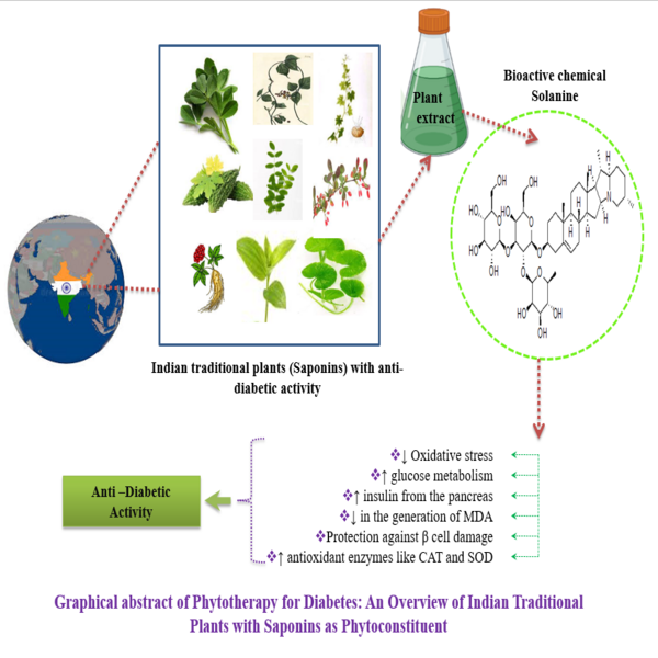 The present article consists of the basic knowledge about diabetes with its classification as Type 1, Type 2, gestational diabetes as well as other types of diabetes mellitus (DM). Diabetes mellitus is a long-term metabolic disorder defined by increased blood glucose levels. Insulin secretion and action are defective in diabetic patients. Diabetes leads to irreversible damage and failure of many organs because of chronic hyperglycemia. They have a complex etiology that arises when the equilibrium of offensive and protective components is altered. The limited effectiveness and severe adverse effects of the currently available medications make treatment extremely difficult. In experimental models of anti-diabetic preparations, natural items such as herbal plants and their extracted components have been frequently used. Saponins, a glycosidic molecule, is proven to have therapeutic potential and they are used as an alternative treatment for insulin in diabetic patients. Saponin-induced dyslipidemia will aid diabetic people in lowering their risk of cardiovascular disease and atherosclerosis. This review aims to explain the antidiabetic function of saponins as well as its potential in the management of diabetes.