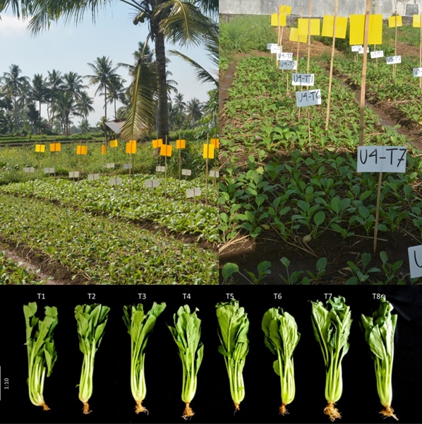 Public awareness of consuming healthy food with minimal pesticide residues has been on the rise. By contrast, farmers still rely on synthetic chemical pesticides to control pests. The shift from synthetic chemical insecticides to botanical insecticides or bioinsecticides is quite complex, especially in Indonesia. Farmers must have the appropriate technology to be independent of synthetic chemical insecticide. This study aims to test the effectiveness of organic adjuvants to increase the effectiveness of insecticides coupled with chlorpyrifos as an active ingredient. We tested the organic adjuvants containing sulfur, acetic acid, NaCl and aqueous extract of Azadirachta indica leaves. The test involved mustard (Brassica juncea (L.) Czern.) plant on land with a high record of S. litura attacks. The study followed a randomized block design with 8 treatments and 5 blocks, with each block consisting of 20 test plants. The treatments involved water control, chlorpyrifos insecticide at recommended concentration, and a combination of chlorpyrifos insecticide and organic adjuvant. The results showed that the combination of insecticides and organic adjuvants did not have a negative impact on mustard growth, as evinced by the absence of significant difference in all treatments. Furthermore, the combination of insecticides and organic adjuvants reduced the rate of plant damage, the population of S. litura and the population of other insect pests. On the other hand, the combination of insecticides and organic adjuvants did not significantly affect the number of beneficial insects compared with treatment without insecticides. The study documented that the combination of 40 mL L-1 organic adjuvant + 1.8 mL L-1 insecticide chlorpyrifos led to the best results. This combination is found the most effective in reducing plant damage and pest population, without any negative impact on beneficial insects. This study has proven the value of organic adjuvants coupled with chlorpyrifos as the active ingredient to reduce the use of insecticides.