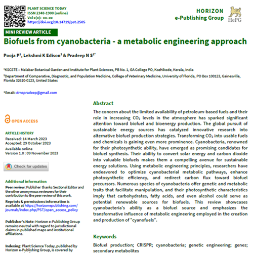 38. Rai KK, Rai R, Singh S, Rai LC. Synthetic Biology Tools in Cyanobacterial Biotechnology: Recent Developments and Opportunities. Re-visiting the Rhizosphere Eco-system for Agricultural Sustainability. 2022:181-203. https://doi.org/10.1007/978-981-19-4101-6_10