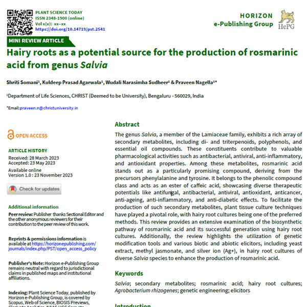 Hairy roots as a potential source for the production of rosmarinic acid from genus Salvia