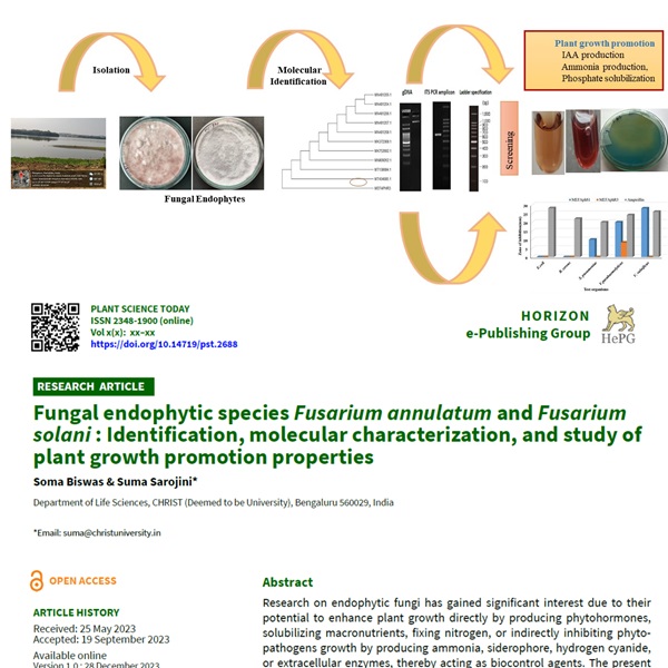 - Philip I, Sarojini S, Biswas S, Jayaram S. Insights into the plant growth promotion properties of bacterial endophytes isolated from Alternantheraphiloxeroides and Eichhorniacrassipes from Bellandur lake, India. South African Journal of Botany. 2023; 162:588-603.https://doi.org/10.1016/j.sajb.2023.09.028