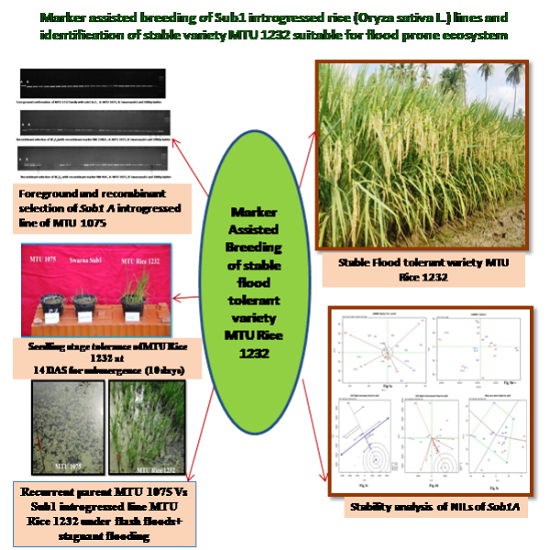Marker assisted breeding of Sub1 introgressed rice (Oryza sativa L.) lines and identification of stable variety MTU 1232 suitable for flood prone ecosystem