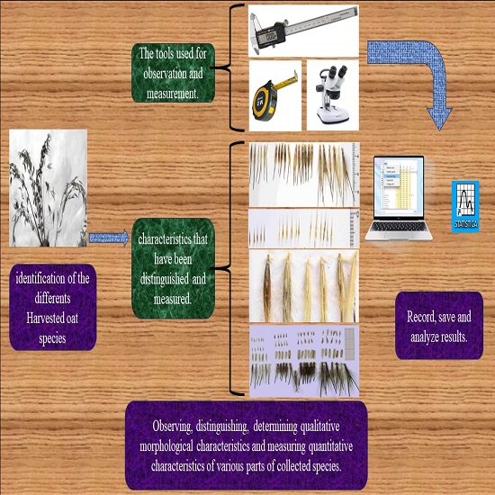 This study was conducted to determine the different ploidy levels of various species of the genus Avena, located in northern Algeria, using different morphological and eco-geographical parameters. The specific objectives of the investigation were to estimate phenotypic diversity for different morphological descriptors. One hundred and thirty-eight populations of the genus Avena were collected from 98 different sites in northern Algeria. Harvest sites were determined based on latitude, longitude, and altitude. The pluviothermic Emberger quotient (Q2) was identified by combining three climatic factors (P = annual rainfall, M = average of the maximum temperature of the warmest month, and m = average of the minimum temperature of the coldest month). The interpretation of this quotient required the use of the Emberger climate diagram, which placed each station in one of the 54 combinations of bioclimatic Mediterranean climate. To evaluate intra and inter-specific morphological variations and the extent to which they express genomic variations, the ordination-based Principal Component Analysis was performed. The results showed the presence of the following species: A. barbata with 59 accessions, A. wiestï with 27 accessions, 21 accessions of A. hirtula, 13 accessions of A. longiglumis, 9 accessions of A. macrostachya, 3 accessions of A. clauda, 4 accessions of A. eriantha (ex-Pilosa), and 2 accessions of A. ventricosa. Quantitative traits were crucial for distinguishing inter and intra-specific individuals. Morphological variations proved largely to express genomic variation among the species studied, especially in distinguishing between species carrying both A and C genomes. The morphological differences could not convey the genomic differences among species that share the C genome.