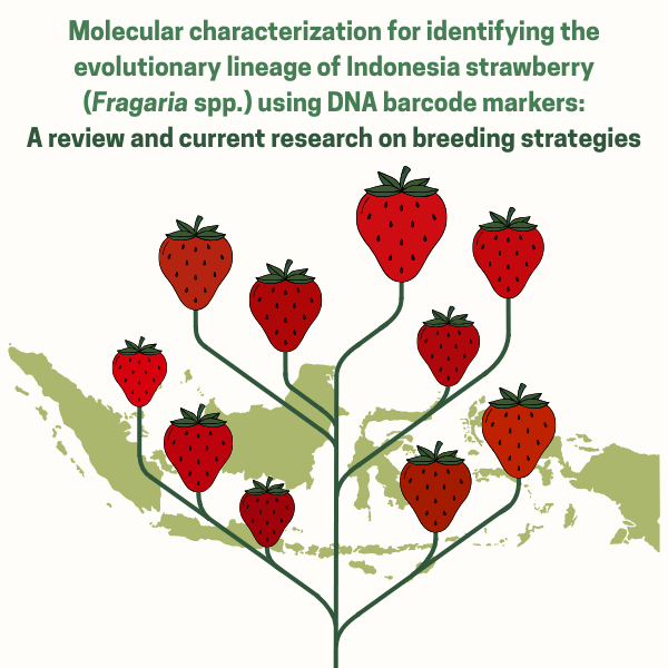 Fragaria spp. (Strawberry) is one of the most popular plant species, with a high economic and nutritional value. It also plays a key role in evolutionary biology, particularly due to its widespread cultivation in Indonesia, where diverse cultivars are imported from abroad. Understanding the evolutionary paths of these cultivars is essential for grasping their genetic diversity. This review aims to explore the evolutionary dynamics of strawberry species found in Indonesia using a DNA barcoding approach. DNA barcoding is a powerful tool for uncovering the complex evolutionary histories of species and revealing their phylogenetic relationships. In this comprehensive review, we discuss various cultivated strawberry species present in Indonesia and examine the evolutionary forces that have driven their diversification. By analyzing genetic evidence, we seek a deeper understanding of the evolutionary processes behind these cultivars. However, challenges remain, particularly for Fragaria species, which face increasingly threats from the introduction and spread of “alien species”. Addressing these challenges requires a holistic approach, that combines evolutionary biology principles with conservation strategies to protect native biodiversity while maximizing agricultural productivity. By enhancing our understanding of the evolutionary patterns and genetic evidence associated with cultivated strawberries in Indonesia, this review not only advances scientific knowledge but also provides a comparative phylogenetic tree of strawberry species in Indonesia. This serves as a foundation for informed conservation and breeding efforts in the constantly changing agricultural landscape.