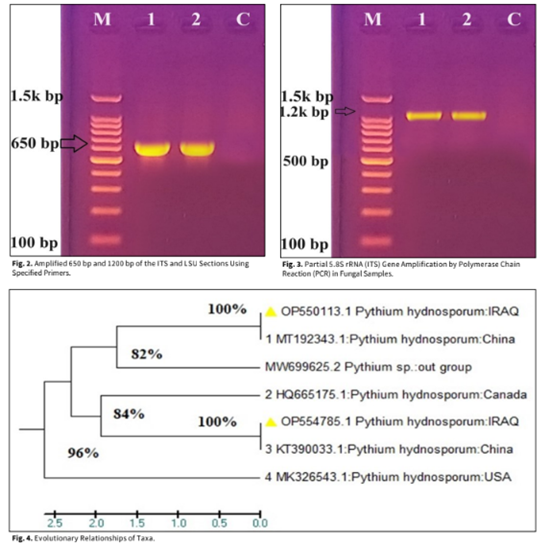Several pathogenic fungi have become an important vine decline of cantaloupe melone (Cucumis melo L.). In 2021, root rot on cantaloupe was observed during the harvest phase in the fields in Penjwen and Shahrazoor in Sulaimani governorate of Northern Kurdistan region Iraq. This present study was conducted to isolate the causal agent of fungi in lesions of root rot of cantaloupe. A total of 16 fungal isolates were obtained of which isolates Monosporascus cannonballus, M. eutypoides, Acremonium vitellinium, Fusarium oxysporium, F. equiseti, Macrophomina phaseolina, Saccharomyces kudriavzevii, F. robinianum, Rhizopus arrhizus, Botrytis cinerea, Cytospora eucalypticola, F. falciforme, Pythium hydnosporum, Alternaria tenuissima, Rhizoctonia solani and Phytophthora colocasiae were obtained from root melon. Identification of all fungal isolates was based on using both morphological characteristics and molecular analysis, on internal transcribed spacer (ITS1, ITS4, LSU) are primers that are used for identification. DNA sequences of the fungal pathogen were identified as Pythium hydnosporum a new pathogenic fungi causal agent of cantaloupe vine decline. A pathogenicity test was conducted to verify Koch's postulates and P. hydnosporum was observed to cause root rot of melon, symptoms of the disease were similar to those seen in the field.