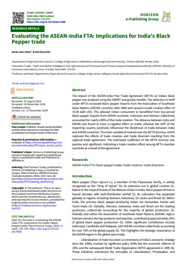 Evaluating the ASEAN-India FTA: Implications for India's black pepper trade