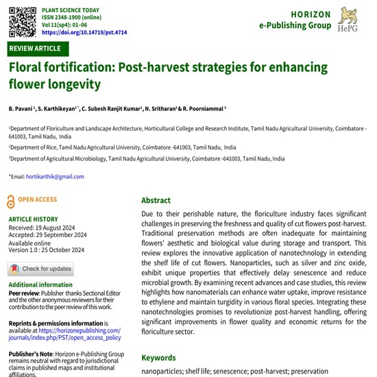 Due to their perishable nature, the floriculture industry faces significant challenges in preserving the freshness and quality of cut flowers post-harvest. Traditional preservation methods are often inadequate for maintaining flowers' aesthetic and biological value during storage and transport. This review explores the innovative application of nanotechnology in extending the shelf life of cut flowers. Nanoparticles, such as silver and zinc oxide, exhibit unique properties that effectively delay senescence and reduce microbial growth. By examining recent advances and case studies, this review highlights how nanomaterials can enhance water uptake, improve resistance to ethylene, and maintain turgidity in various floral species. Integrating these nanotechnologies promises to revolutionize post-harvest handling, offering significant improvements in flower quality and economic returns for the floriculture sector.