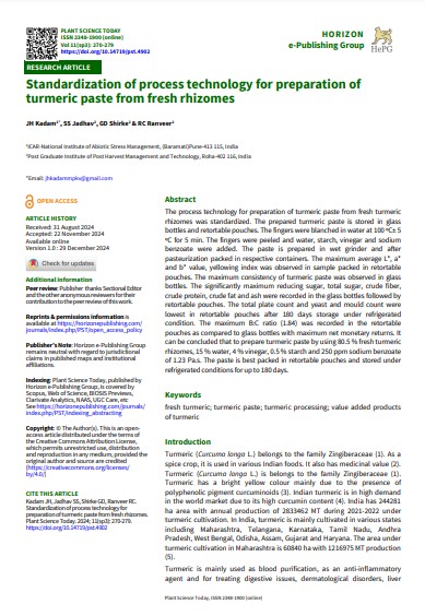 Standardization of process technology for preparation of turmeric paste from fresh rhizomes