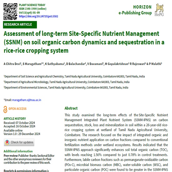 Assessment of long-term Site-Specific Nutrient Management (SSNM) on soil organic carbon dynamics and sequestration in a rice-rice cropping system