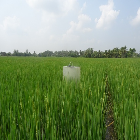 Rice (Oryza sativa L.) is cultivated in diverse environments, contributing significantly to global methane (CH4) emissions, accounting for approximately 12% of total methane emissions worldwide. With the demand for increasing rice production, methane emissions from rice fields continue to rise. This underscores the need for reliable strategies for estimation and mitigation strategies. This study aims to estimate methane emissions from rice fields of the Cauvery Delta region of Tamil Nadu using remote sensing data. Sentinel 1A Synthetic Aperture Radar (SAR) data was used to delineate rice areas and assess agronomic flooding, while Land Surface Temperature (LST) derived from MODIS satellite data was used to estimate methane emissions. The semi-empirical methane emission model was employed to estimate methane flux based on temperature-related factors and rice area. The spatial methane estimates derived from the LST-based method were compared with field observations. The results showed that during the Kharif and Rabi seasons of 2023, a total of 169679 and 356270 ha of rice area were delineated, respectively. The total methane emissions of 7.16 and 17.09 Gg were estimated for both seasons, respectively. The agreement between estimated and observed methane for both seasons was 84.74 % and 87.52 %, respectively. This study provides an efficient empirical method for estimating methane emissions across large areas and highlights the need for continued monitoring and the development of mitigation strategies to reduce methane emissions from rice cultivation.