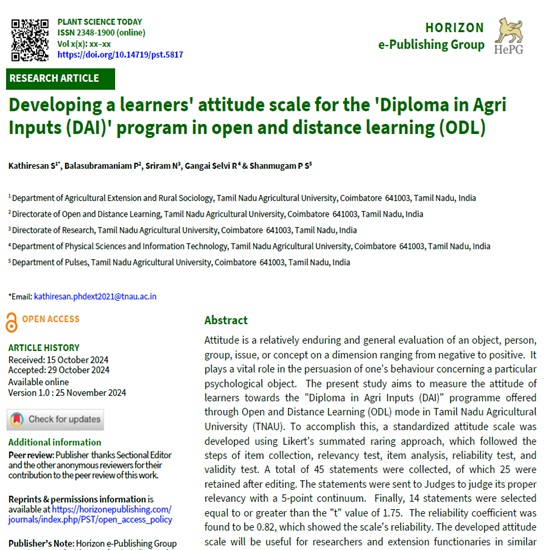 Developing a learners' attitude scale for the 'Diploma in Agri Inputs (DAI)' program in open and distance learning (ODL)