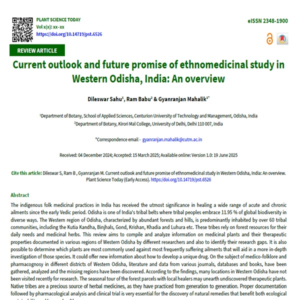 36. 36. Rath AK, Mishra SR. Ethnobotany. Kalyani Publishers, New Delhi-110002. 2017; Chapter II. p. 20–25.