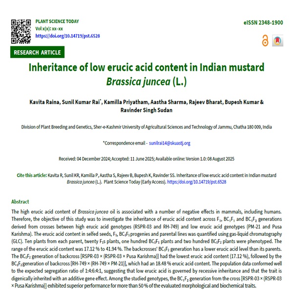 6. 6. Mehta N, Tiwari A, Nag SK. A review: Breeding for oil quality in rapeseed and mustard. Trends in Biosci. 2015;8(22):6024‒31.