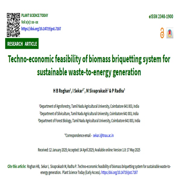 Biomass has gained attention as a renewable energy source capable of achieving net-zero carbon dioxide emissions during its production and use. Biomass, particularly agro-residues and forestry waste, is a promising energy source for developing countries facing fossil fuel shortages and environmental challenges. However, these materials are difficult to handle due to their bulky nature and inefficient combustion. Briquetting, a compaction technology, addresses these challenges by converting biomass into compact, high-density, lowmoisture briquettes with improved combustion properties and reduced smoke emissions. The study evaluates various combinations of biomass, finding that briquettes made from sawdust and plywood residues exhibit higher bulk density, increased fixed carbon content, and calorific values ranging from 4200 to 4814.4 kcal/kg, comparable to fuel wood. Additionally, the briquettes demonstrate favorable ash fusion and deformation temperatures and perform well in impact resistance and compression tests. Economically, the briquetting model, tested at the Forest College and Research Institute, has a payback period of two years due to the low cost of raw materials. This technology is an eco-friendly and cost-effective solution for biomass utilization, offering a sustainable alternative to traditional fuels and contributing to forest conservation efforts. The results suggest that briquetting using forest and industrial wood residues will remain profitable even with potential increases in raw material costs.