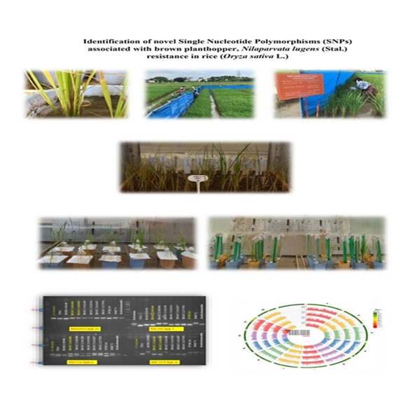 The brown planthopper (BPH) is one of the most predominant rice insect pests in Asia. Changes in the virulence pattern of BPH across the regions and breakdown of resistance in many released resistant cultivars warrant identification of novel and diverse germplasm resources that can be deployed for developing new rice varieties with a broader genetic base. Accordingly, the field phenotypic screening was conducted over two years during kharif 2020 and 2021 using 300 rice genotypes (selected from 3 K subset of BPH panel) along with eight checks in an augmented block design to identify the BPH-resistant donor lines. Two rice genotypes viz., IRGC 126266 and IRGC 128206 exhibited consistent resistant reaction during both years. Mechanism of resistance studies (conducted during rabi 2021-2022) revealed that, among the two promising germplasm, IRGC 126266 exhibited all the three mechanisms of resistance by recording lower honey dew excretion (72.5 mm2), lower nymphal survival rate (47.5 %), longer nymphal development period (17.20 days), lowest growth index (2.4) and took more days to wilt (27.2) compared to the susceptible check, TN1. Genome Wide Association Studies (GWAS) analysis was conducted in the 3K subset of BPH panel using four single locus models to identify the SNPs associated with BPH resistance. Significant SNPs were identified in proximity with several BPH resistance genes viz., Bph33(t), Bph13(t), Bph6, Bph34, Bph3, Bph4, Bph25, Bph29, Bph32, Bph28(t), Bph2, Bph26, Bph7, Bph9, Bph18(t) and Bph21(t). Candidate gene analysis study revealed that 9 Quantitative Trait Nucleotides (QTNs) associated with stress tolerance genes played a significant role in BPH resistance.