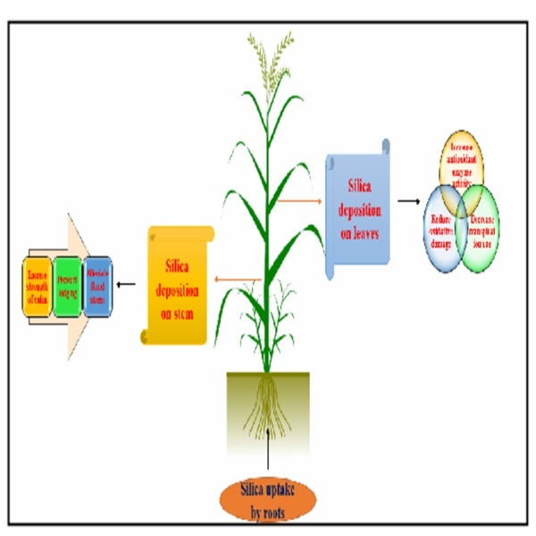 Increasing food demand with ever-increasing world population, declining water availability and imbalanced fertilizer application to agriculture have impacted global food security. A substantial disparity exists between the potential and actual yield of rice in farmer’s fields, which is primarily attributed to improper nutrient management practices. Silicon (Si) is one of the essential nutrients that play a vital role in rice growth and development. It is the second most abundant element in the earth's crust, which is assimilated solely as monosilicic acid. Rice is a high Si accumulator plant and absorbs on an average 150-300 kg of Si ha–1. Absorption and accumulation of Si in rice plants vary from 0.1-10 per cent on dry weight basis. It is probably the only element which can enhance the resistance to multiple stresses. Silicon fertilization has emerged as a promising approach to enhance the sustainability of rice cultivation. Silicon plays a multifaceted role in rice plants, influencing growth, yield and resistance to biotic and abiotic stresses. It enhances plant resilience against various pests and diseases and inducing the accumulation of antifungal compounds. Moreover, silicon mitigates abiotic stresses such as salinity, drought and metal toxicity, thereby improving yield stability and resilience to environmental fluctuations. Furthermore, silicon application contributes to sustainable water management by reducing transpiration and enhancing water use efficiency.