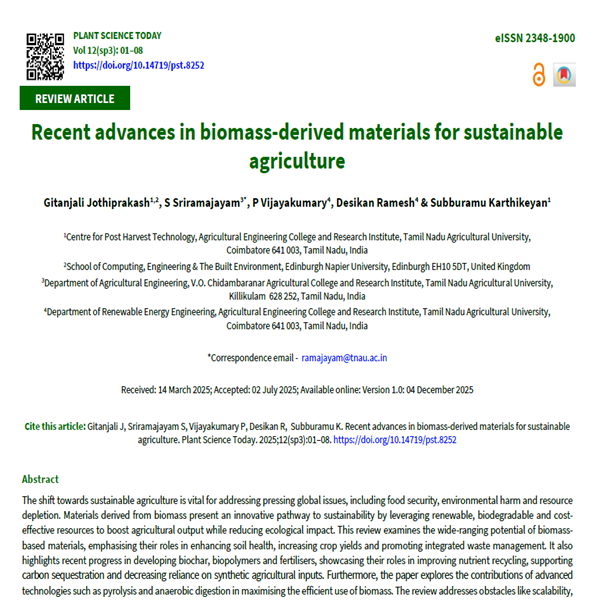 The shift towards sustainable agriculture is vital for addressing pressing global issues, including food security, environmental harm and resource depletion. Materials derived from biomass present an innovative pathway to sustainability by leveraging renewable, biodegradable and cost-effective resources to boost agricultural output while reducing ecological impact. This review examines the wide-ranging potential of biomass-based materials, emphasising their roles in enhancing soil health, increasing crop yields and promoting integrated waste management. It also highlights recent progress in developing biochar, biopolymers and fertilisers, showcasing their roles in improving nutrient recycling, supporting carbon sequestration and decreasing reliance on synthetic agricultural inputs. Furthermore, the paper explores the contributions of advanced technologies such as pyrolysis and anaerobic digestion in maximising the efficient use of biomass. The review addresses obstacles like scalability, cost considerations and environmental challenges while offering policy recommendations and identifying key areas for future research. Ultimately, this comprehensive analysis underscores the significant impact of biomass-derived materials in driving sustainable agricultural practices and advancing a circular economy.