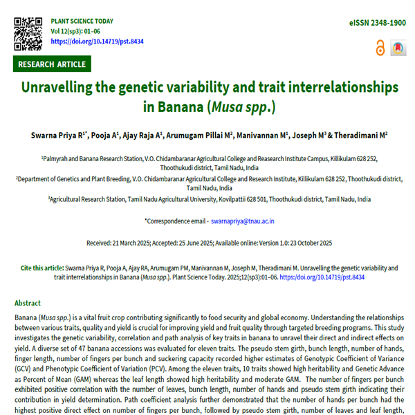 Unravelling the genetic variability and trait interrelationships in Banana (Musa spp.)