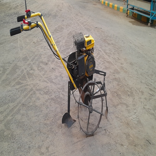 The weeds are undesirable, unwanted plants. Weeding is an important operation in crop production and labour-intensive agricultural operation. Weeding is generally done 15 - 20 days after sowing. Weeding is carried out at the initial stages of crop growth especially for controlling the weeds. After weeding operation, soil earthing-up provides favourable condition for crop growth. Weeding in narrow row spacing is difficult operation with less space between the two rows. In addition to that the soil compaction is the limiting factor due to the rotary motion of rotating blade in dry land weeder hence to avoid this, reciprocating motion type weeder was developed and performance was evaluated in narrow row spaced crop of 200 - 300 mm. The weeder consists of prime mover, ground wheel, power transmission unit, scotch yoke or spading mechanism, spading blade and earthing-up unit. Ground wheels were provided for the stability of the equipment. Scotch yoke mechanism consists of two turning pairs and two sliding pairs which were used for converting rotary motion into a reciprocating motion. The mechanism comprising of four links viz., fixed link or frame, rotating cam disc, connecting arm and spading arm. The inversion is obtained by fixing any one of the links namely as frame. Spading blade was mounted at the end of connecting arm. Earthing-up operation was done with ridger type blade which was provided at rear side of spacing mechanism. The maximum rotating speed of cam disc and forward speed of unit was measured as 125 rpm and 1.5 km h-1 respectively. The power required was calculated as 0.39 kW and bite length of cutting blade is 190 mm. The results for field evaluation of developed prototype weeder revealed that the weeding efficiency, plant damage, actual field capacity and performance index are 78.35 %, 5.1 %, 0.03 ha h-1 and 571.95 respectively. The cost of the developed prototype weeder was ₹35000. The cost of operation of the machine was ₹3871.66 ha-1 compared to ₹6152 ha-1 for hand weeding.