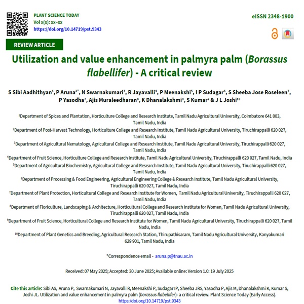 Borassus flabellifer, commonly known as the palmyra or “Miracle Tree,” is a traditional plant with immense nutritional and economic value. With nearly 122 million palms spread across India, it holds great economic potential, as every part of the tree is useful. A wide range of value-added products-such as Neera, Nungu, Palm Jaggery, Palm Sugar, Palm Candy, Palm Fibre Composite, Palm Cola, Honey, Thavun, Muffins, Cookies, Gummy Jelly, Palm Wine, Toffee, Tuber and Palm paper can be derived from the palm. These products are not only nutritious but also support processed food industries and eco-friendly innovations. Palmyrah is a versatile plant with deep cultural and economic significance, offering considerable scope for rural development, employment generation and sustainable livelihoods. Value addition through the transformation of raw materials into high-value goods allows communities to reduce post-harvest waste, enhance income and tap into new markets. The sector’s growth can be accelerated through quality improvement, innovative packaging, branding, training, infrastructure development and supportive policies. With proper intervention, the palmyra industry can become a vital driver of inclusive and resilient economic growth in palm-abundant regions. This study aims to evaluate the sector’s potential to enhance sustainable livelihoods and regional development, focusing on the role of strategic enhancements in packaging, branding, training, infrastructure and regulation in unlocking its broader economic contributions of palmyra.
