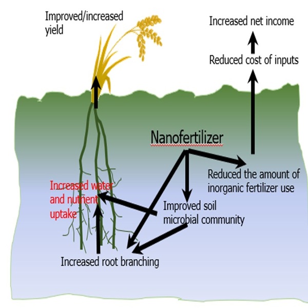 Nanotechnology holds an immense potential to revolutionize rice production especially in enhancing grain yield. This study evaluates the effect of nanotechnology on grain yield, microbial activity, root development and economic returns over multiple cropping seasons (2022 to 2024). In the 2022 Wet Season (WS), while full-dosed inorganic fertilizer (100 % Rice Crop Manager, RCM) (6.87 tha-1) did not meet the targeted yield due to typhoon-induced lodging, treatments with 50 % RCM combined with Nano fertilizer (NF) produced comparable yields (6.27 to 6.62 tha-1). In 2023 Dry Season (DS), both full RCM and 50 % RCM with NF yielded 6.85 t ha-1; in 2023 WS, 50 % RCM with NF yielded higher yield (4.88 to 5.60 tha-1) than no-fertilizer control (4.35 tha-1); and in 2024 DS, full RCM produced the highest yield of 8.51 tha-1 while 50 % RCM + NF yielded 7.11 tha-1. Soil microbial activity, using Shannon Index was lower in plots with continuous synthetic fertilizer application (H’=2.71) in 2024 DS, showing a decline in soil microbial diversity. Root system development was most robust with full RCM, but the reduced RCM with NF also had favourable root growth, particularly lateral root length. Partial budget analysis revealed that while full RCM provided the highest gross income, the 50 % RCM + NF produced yielded higher net incomes due to lower input costs. The promising results of reduced RCM rates + NF warrant further investigation to assess long-term sustainability, cost-effectiveness and broader environmental impact.