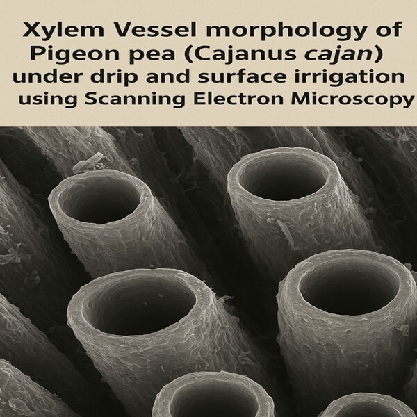 The study aimed to analyze the morphological attributes of the root and stem xylem diameter of pigeon pea through scanning electron microscopy to understand its structural and functional characteristics under varying conditions and provide significant insights into the structural variations caused by different irrigation methods.​ Through Scanning electron microscope imaging, distinct differences in vessel architecture, such as size and wall thickness, were observed in root and stem, which may impact water and nutrient transportation efficiency and overall plant health. These variations are vital for understanding how irrigation strategies affect the physiological function and adaptation of pigeon pea, providing crucial information for improving agricultural practices and enhancing crop yield in varying environmental conditions. The results emphasize the importance of optimizing irrigation methods to promote better vascular development in crops, ultimately leading to sustainable agricultural practices. Scanning electron microscopy images revealed distinct differences in xylem vessel structure between drip and surface irrigation of pigeon peas.