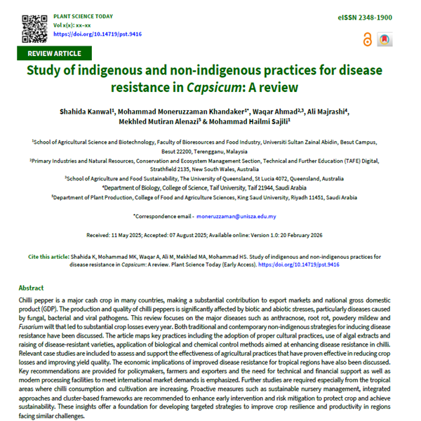 Chilli pepper is a major cash crop in many countries, making a substantial contribution to export markets and national Gross Domestic Product (GDP). The production and quality of chilli peppers is significantly affected by biotic and abiotic stresses, particularly diseases caused by fungal, bacterial and viral pathogens. This review focuses on the major diseases such as anthracnose, root rot, powdery mildew and Fusarium wilt that led to substantial crop losses every year. Both traditional and contemporary non-indigenous strategies for inducing disease resistance have been discussed. The article maps key practices including the adoption of proper cultural practices, use of algal extracts and raising of disease-resistant varieties, application of biological and chemical control methods aimed at enhancing disease resistance in chilli. Relevant case studies are included to assess and support the effectiveness of agricultural practices that have proven effective in reducing crop losses and improving yield quality. The economic implications of improved disease resistance for tropical regions have also been discussed. Key recommendations are provided for policymakers, farmers and exporters and the need for technical and financial support as well as modern processing facilities to meet international market demands is emphasized. Further studies are required especially from the tropical areas where chilli consumption and cultivation are increasing. Proactive measures such as sustainable nursery management, integrated approaches and cluster-based frameworks are recommended to enhance early intervention and risk mitigation to protect crop and achieve sustainability. These insights offer a foundation for developing targeted strategies to improve crop resilience and productivity in regions facing similar challenges.